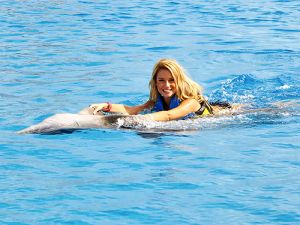 Si uno de tus grandes sueños es nadar con delfines, ¡ahora es el momento de convertir lo inimaginable en realidad! En el Océano Pacífico podrás vivir una aventura que recordarás para siempre. El programa Dolphin Swim Adventure® en Vallarta te dará la oportunidad de estar más cerca de los delfines de lo que siempre imaginaste. Te daremos un equipo de esnórquel para que conozcas su mundo submarino, también te impulsarán de la planta de los pies mientras estás sobre una tabla boogie para darte un paseo a toda velocidad. Los delfines te saludarán con ternura moviendo sus aletas, te darán besitos, entonarán canciones para ti, te llevarán a pasear sobre su barriguita y los verás saltar y jugar contigo. ¡Reserva hoy y vive la experiencia de tu vida!